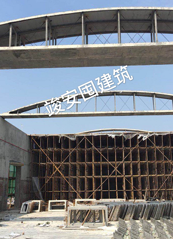 四川竣安囤建筑工程有限公司為專業(yè)預(yù)應(yīng)力拱板施工公司,公司注冊資本為1000萬元。公司經(jīng)營范圍:住宅房屋建筑、房屋建筑工程、市政公用工程、土石方工程服務(wù)、防水防腐保溫工程、鋼結(jié)構(gòu)工程、橋梁工程、公路交通工程、地基基礎(chǔ)工程、園林綠化工程施工、水利水電工程、建筑裝飾工程、建筑勞務(wù)分包、砼結(jié)構(gòu)構(gòu)件制造、預(yù)應(yīng)力工程專業(yè)承包。 公司現(xiàn)有專業(yè)技術(shù)人員22人,均從事預(yù)應(yīng)力拱板施工超過10余年,技術(shù)力量強大,現(xiàn)場施工經(jīng)驗豐富,能適應(yīng)各種預(yù)應(yīng)力拱板施工,專業(yè)技術(shù)工人500余人,專業(yè)隔板施工人員60人,木工120人,鋼筋工90人,混凝土工150人,專業(yè)電工、焊工20余人,專業(yè)張拉機手35人,專業(yè)拱板高空滑移就位人員50人,能進行10余個工地同時施工。 公司先后承建了中儲糧荊門直屬庫掇刀分庫、中儲糧監(jiān)利直屬庫、 湖北省荊州川店儲備庫、湖北省咸寧儲備庫、湖南岳陽儲備庫、廣安火車站中直糧庫、湖北江陵儲備庫、湖北孝感儲備庫、廣安武勝國家糧庫、重慶秀山國家糧庫、云南玉溪紅塔區(qū)糧庫、云南西山區(qū)國家糧庫、云南曲靖陸良國家糧庫、云南江川糧庫、云南曲靖市糧庫、四川瀘縣嘉明糧庫、四川邛崍固驛種子庫、四川遂寧安居中直庫、云南石林糧倉、云南楚雄牟定糧庫、云南綏江縣糧庫、四川廣安儲備庫、云南盈江拆舊建新糧庫、貴州畢業(yè)糧庫、云南嵩明糧庫、重慶南川儲備庫、云南石林糧庫、遂寧直屬庫安居分庫、云南祿勸糧庫、綿陽三臺直屬庫、重慶渝西南糧庫、重慶墊江儲備庫、重慶永川儲備庫、重慶梁平儲備庫、重慶忠縣儲備庫、重慶江津儲備庫、重慶黔江儲備庫、黔江軍糧站、成都新都儲備庫、四川彭州儲備庫、四川蒙陽儲備庫、四川什邡儲備庫、四川遂寧儲備庫、廣安回龍儲備庫、達州開江物流園儲備庫、大理巍山儲備庫、大理云龍儲備庫、大理祥云儲備庫、云南威信儲備庫、昆明祿勸儲備庫、普洱景東儲備庫、臨滄雙江儲備庫、昭通大關(guān)儲備庫、楚雄南華儲備庫,庫房跨度24米。 公司專業(yè)承接預(yù)應(yīng)力拱板板制作,采用空中預(yù)制施工工藝,僅需在室內(nèi)地面進行拱板隔板預(yù)制。重點在高空利用原有部分圈梁進行加固改造形成張拉臺座,完成下弦板預(yù)應(yīng)力張拉,一次性完成拱板屋架混凝土澆筑,待拱板屋架整體砼達到設(shè)計強度時,實施放張,用千斤頂頂起拱板放置專用滑輪車上,運用卷揚機在水平圈梁上滑移至設(shè)計安裝位置。本工藝不需搭設(shè)滿堂腳手架(僅局部搭設(shè)),不需大型機械吊裝,不需大型堆碼場地,比地下預(yù)制成本低,安全可靠。比滿堂腳手架耗材少,是一種經(jīng)濟實用型工藝。